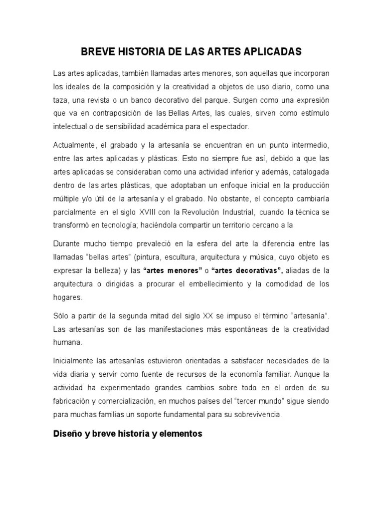Las artes menores están encaminadas en la perfección de todos los objetos que nos. Pide a la comisión que, en el marco de los programas comunitarios existentes, como el programa marco para la innovación y la competitividad, fomente iniciativas dirigidas a apoyar las actividades industriales y profesionales y las artes aplicadas, especialmente las que están amenazadas de extinción y son necesarias para la correcta restauración y conservación del patrimonio arquitectónico 13.10.2015 · las artes aplicadas son aquellas que incorporan los ideales de la composición y la creatividad a objetos de uso diario, como una taza, una revista o un banco decorativo del parque.. Por artes aplicadas nos referimos a la amplia área de actividad que realizan diseñadores y artesanos, es decir, aquellos que reflejan y trabajan la forma y función de todo lo que rodea al.